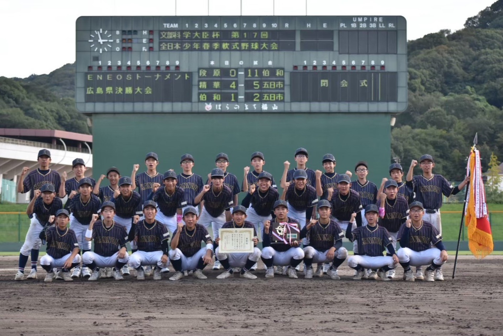 | 五日市観音シニア野球クラブ | 0 | 2 | 0 | 0 | 1 | 0 | X | 3 |